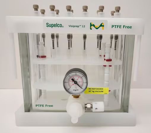 Visiprep™ SPE真空支架用于进行固相萃取,从葡萄中分离多酚类物质,从而使用LC-MS分析法测定多酚类含量。它还用于浓缩和净化地表水和污水沉积物中的溶剂萃取物。此外,它还用于通过固相萃取-酶联免疫吸附测定(SPE-ELISA)对水中的雌酮进行萃取和测定。
